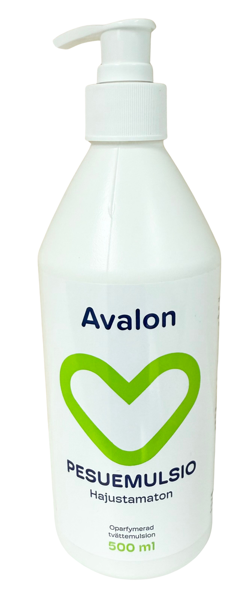 Avalon Pesuemulsio, hajusteeton on koko keholle, erityisesti vaippa-alueen iholle soveltuva pesuemulsio. Tarkoitettu käytettäväksi saippuan sijasta. Ei tarvitse huuhtoa. Pesuemulsio sekä puhdistaa, että hoitaa ihoa, ehkäisten ihon kuivumista.